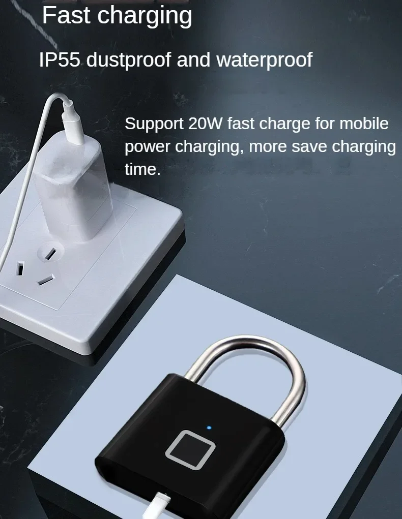 P2 Smart Fingerprint Padlock Waterproof Zinc Alloy Biometric Padlocks with Buit-In Rechargeable Battery